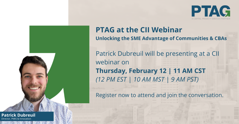 PTAG is pleased to announce that Patrick Dubreuil will be presenting in an upcoming Construction Industry Institute (CII) webinar exploring how Communities for Business Advancement (CBAs) are shaping priorities for 2026.